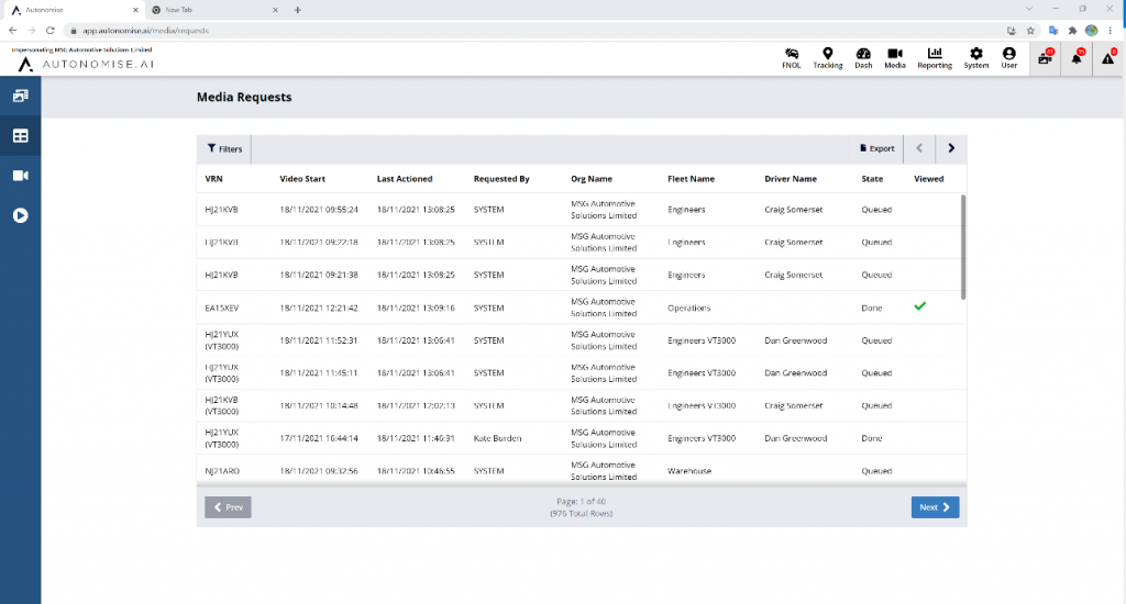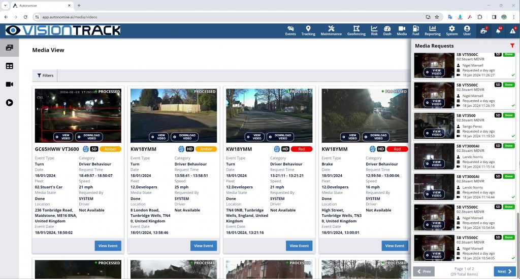 The original VisionTrack media presentation was grid-based lists with no thumbnails or previews.