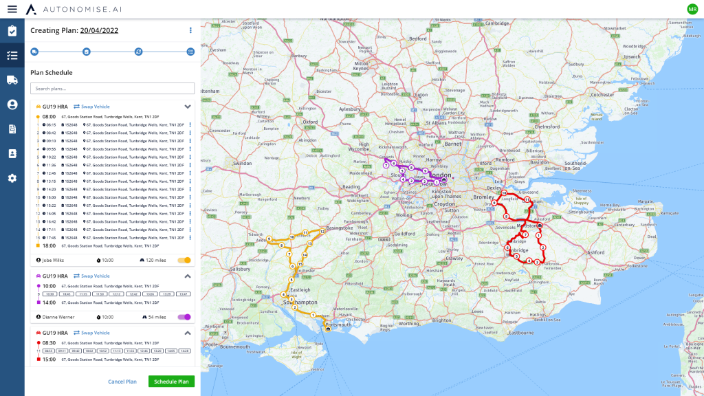 The POC delivered a streamlined, easy-to-use interface that fitted into the existing product design style and gave users a powerful yet simple route scheduling interface.